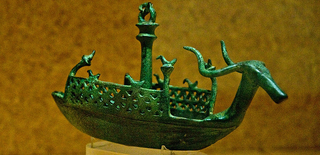 This is a real picture of a small votive bronze boat, which was found in a Nuraghe. Several samples of these boats are shown in the Archeological Museum of Cagliari, which is close by the venue of Odysseus 2018. The Archeological Museum can be visited for free Sunday June 3, 2018.
